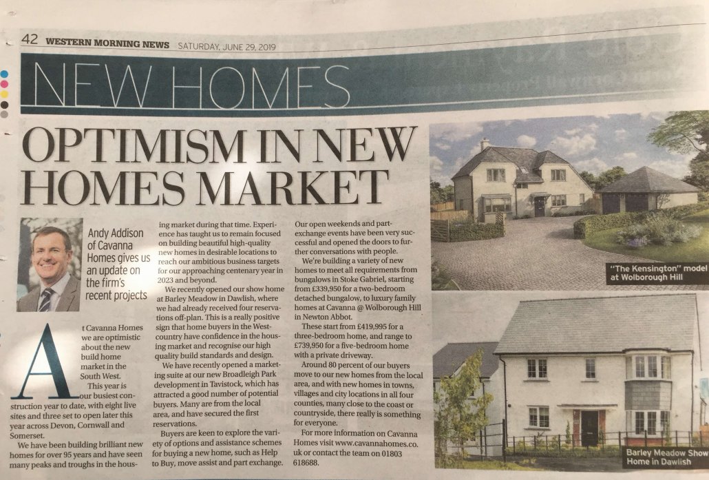 Our Operations Director, Andy Addison talks about the positive shift in the new build property market and our new home developments in Dawlish and Tavistock, in the Western Morning News’ Summer Property Review.