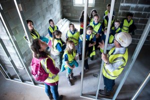Class 5 pupils from Collaton St Mary Primary School in Paignton put on their wellie boots and high vis jackets and joined us to learn first-hand how to build a house.