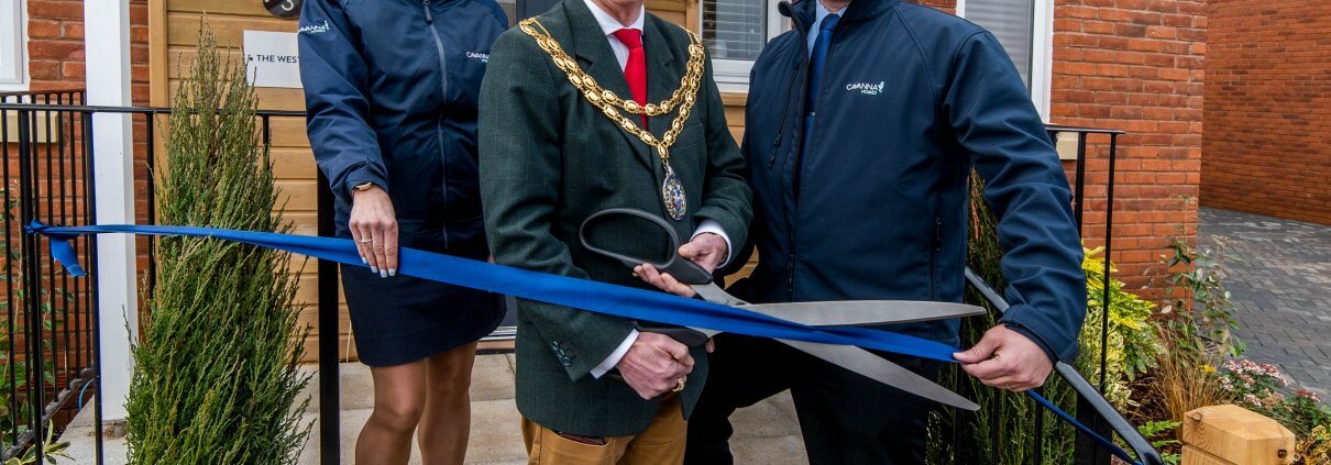 The show home opening at Lyme View was celebrated with a ribbon-cutting ceremony performed by Councillor Richard Keeling, Chairman of Teignbridge District Council.