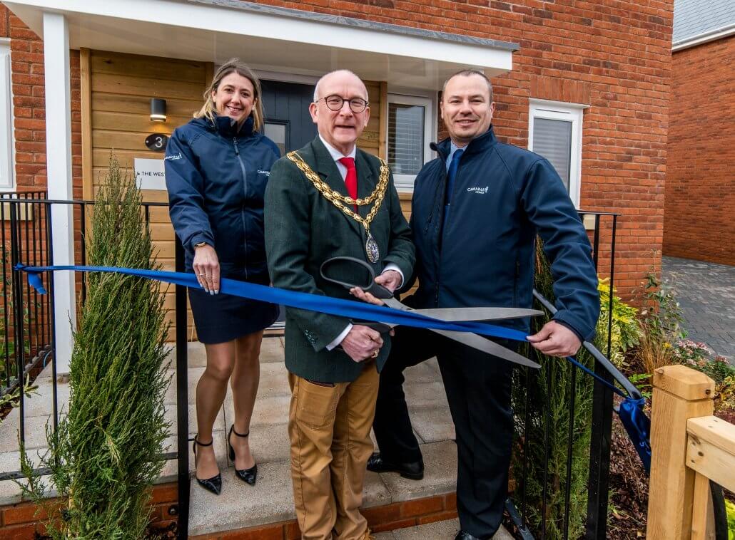 The show home opening at Lyme View was celebrated with a ribbon-cutting ceremony performed by Councillor Richard Keeling, Chairman of Teignbridge District Council.