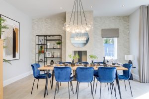 This is exactly what we did in Cavanna Homes’ Lyme View show home in the village of Holcombe near Dawlish where we added a stunning drop light above the dining table which catches the eye when you walk into the room and complements the simple and sophisticated style of the furniture.