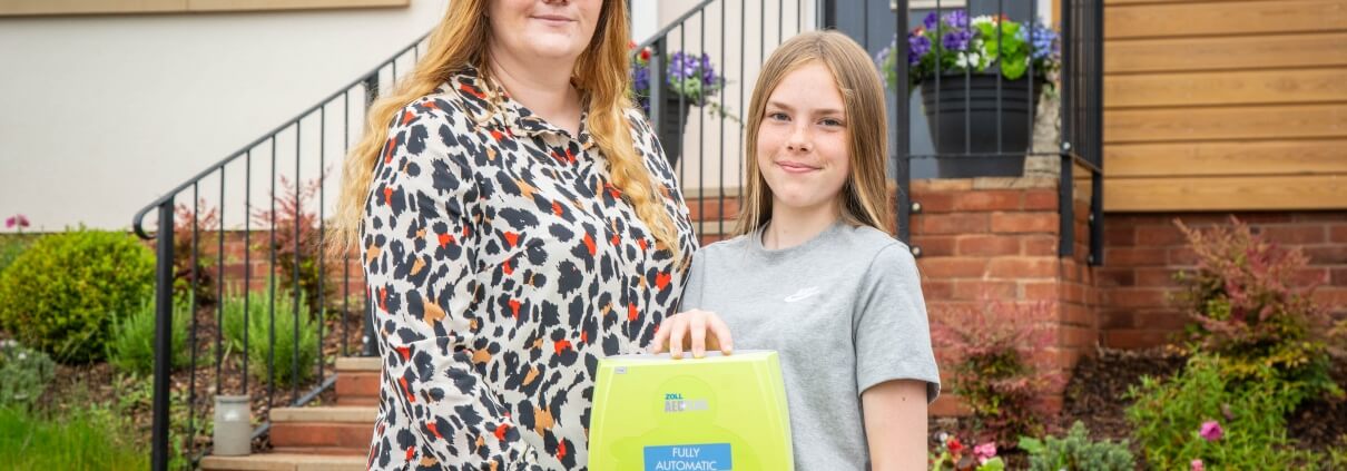 Two lifesaving defibrillators have been donated by Cavanna Homes to the family and school of 12-year-old Ella Halfyard who was diagnosed with a serious heart condition earlier this year.