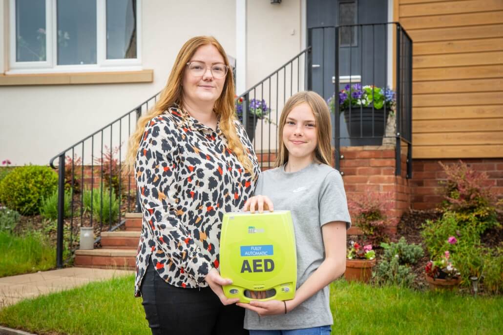 Two lifesaving defibrillators have been donated by Cavanna Homes to the family and school of 12-year-old Ella Halfyard who was diagnosed with a serious heart condition earlier this year.