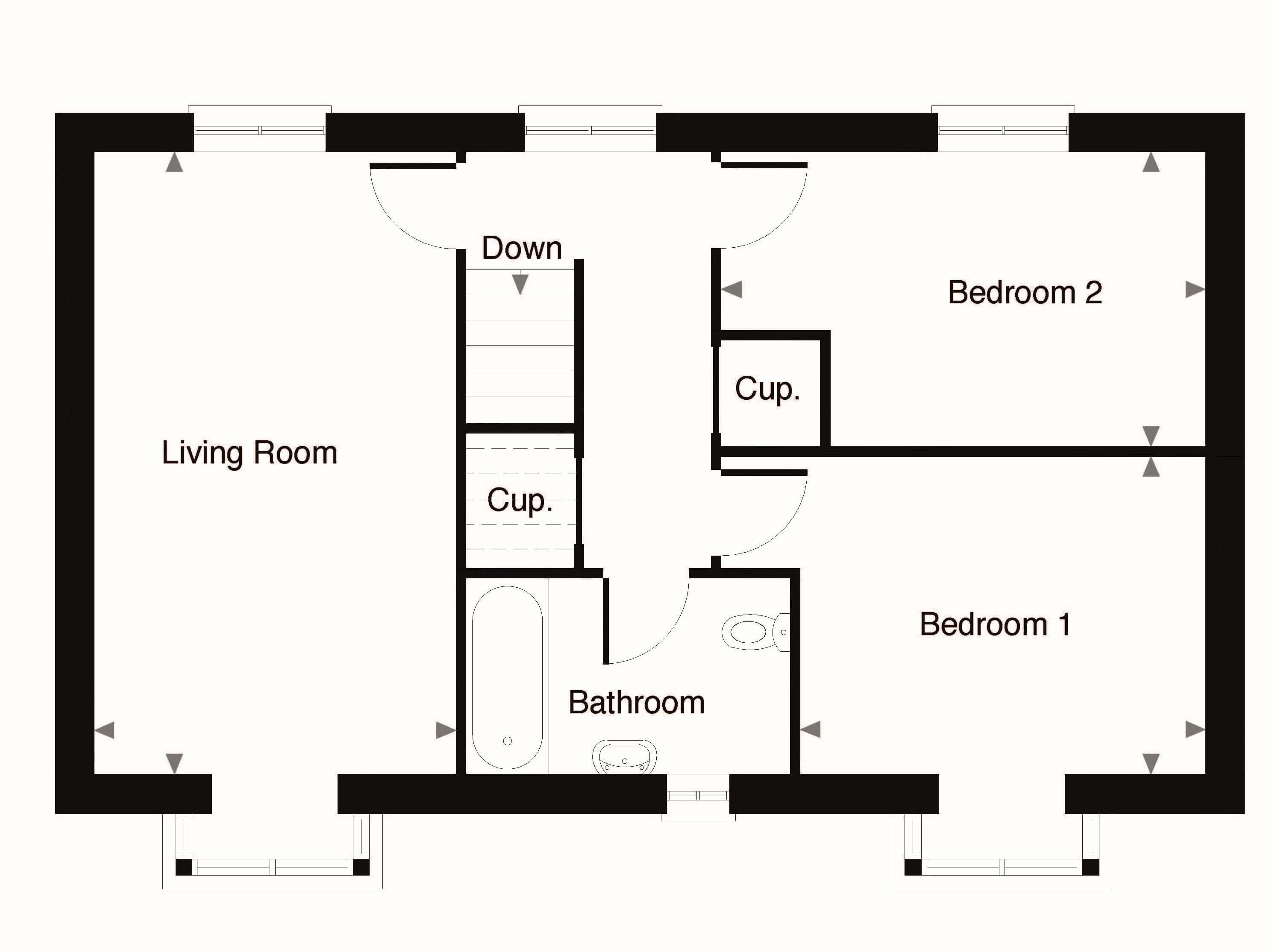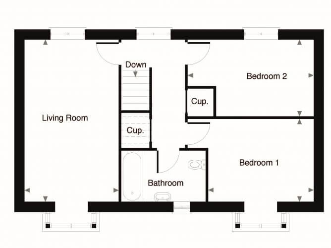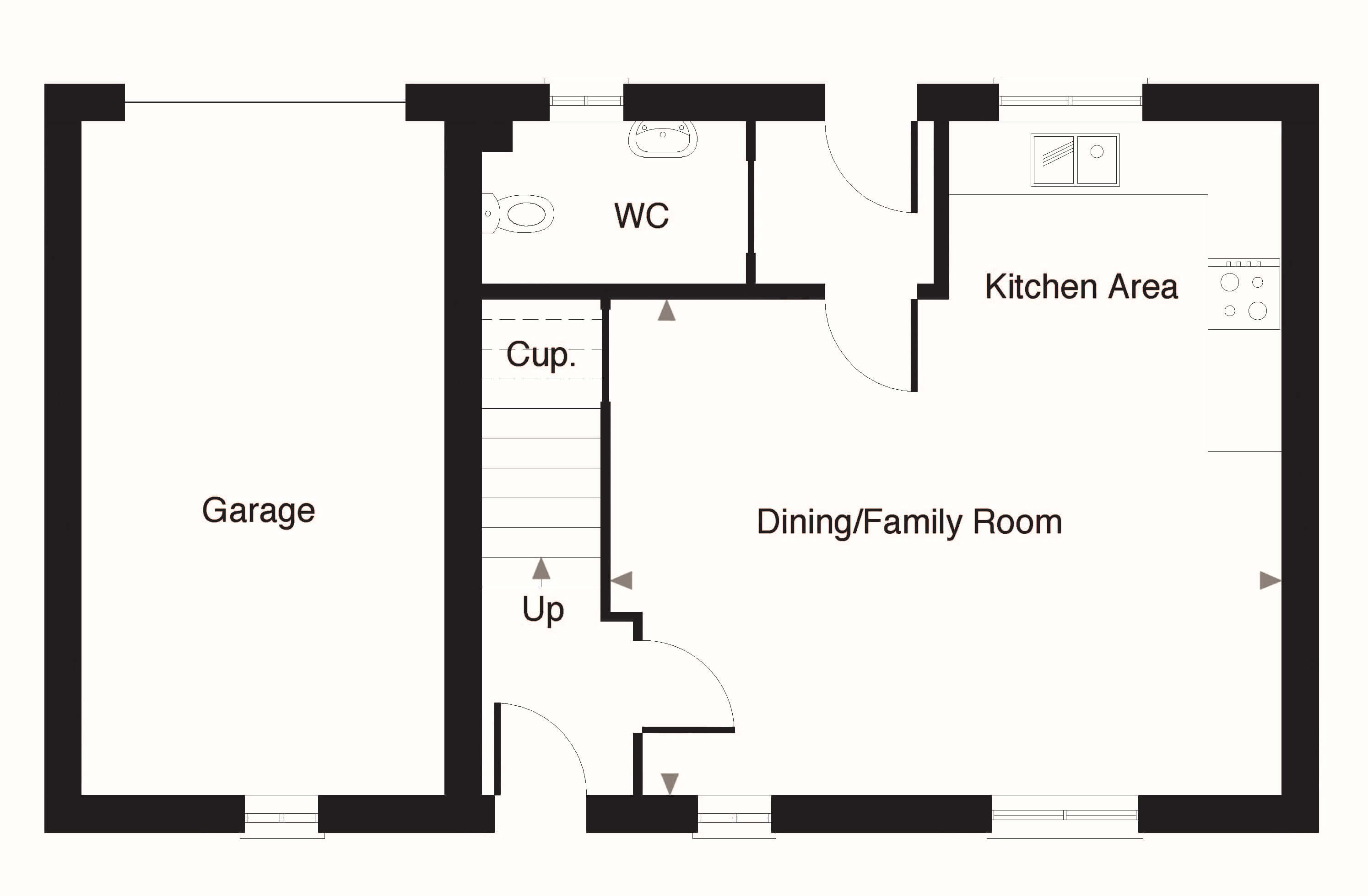 A two bedroom house with open plan kitchen/dining/family room, separate living room, garage & parking.