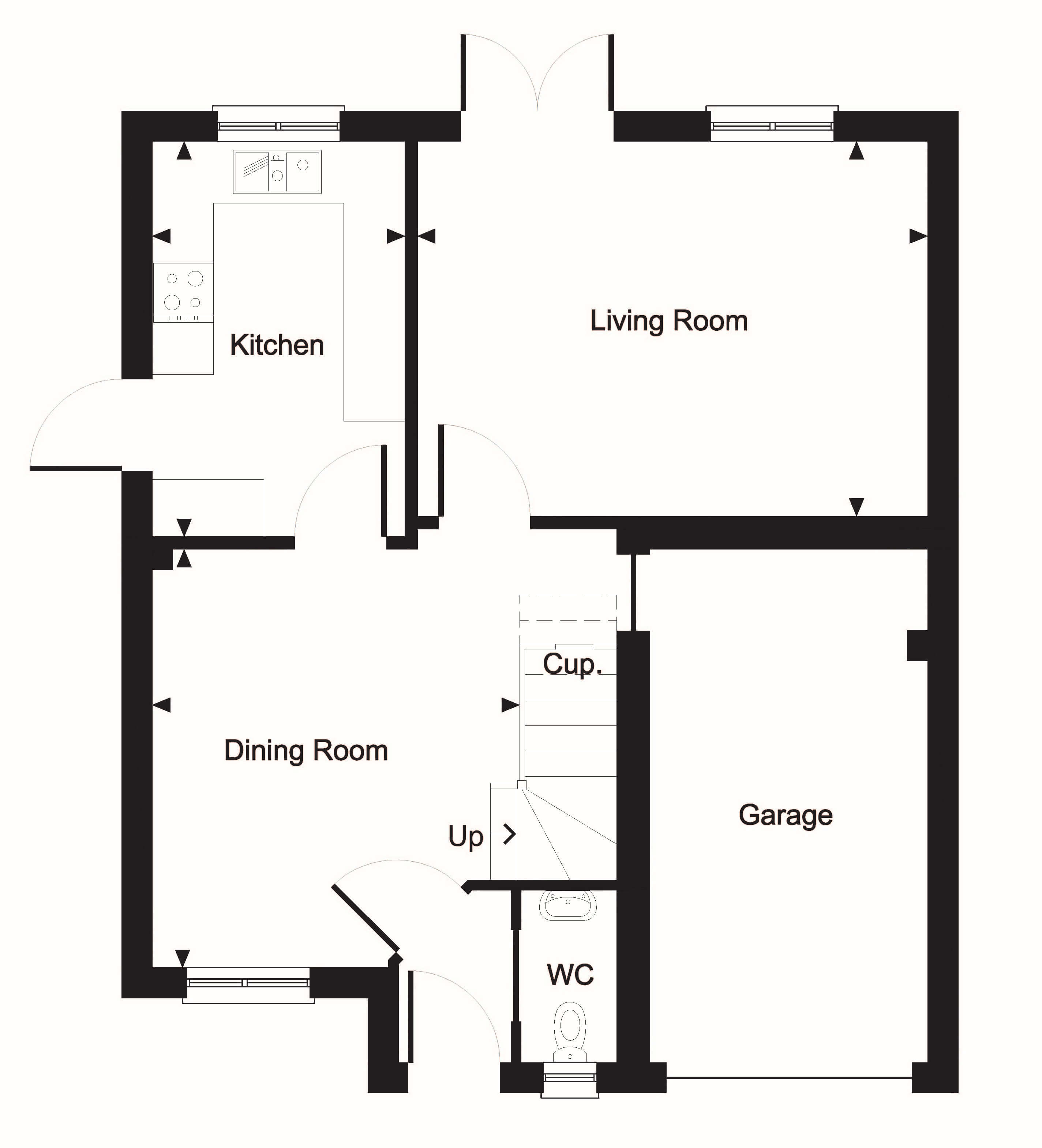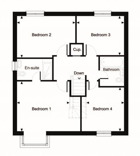 A four bedroom house with spacious kitchen, separate dining room, en-suite master bedroom, downstairs cloakroom and integral garage.