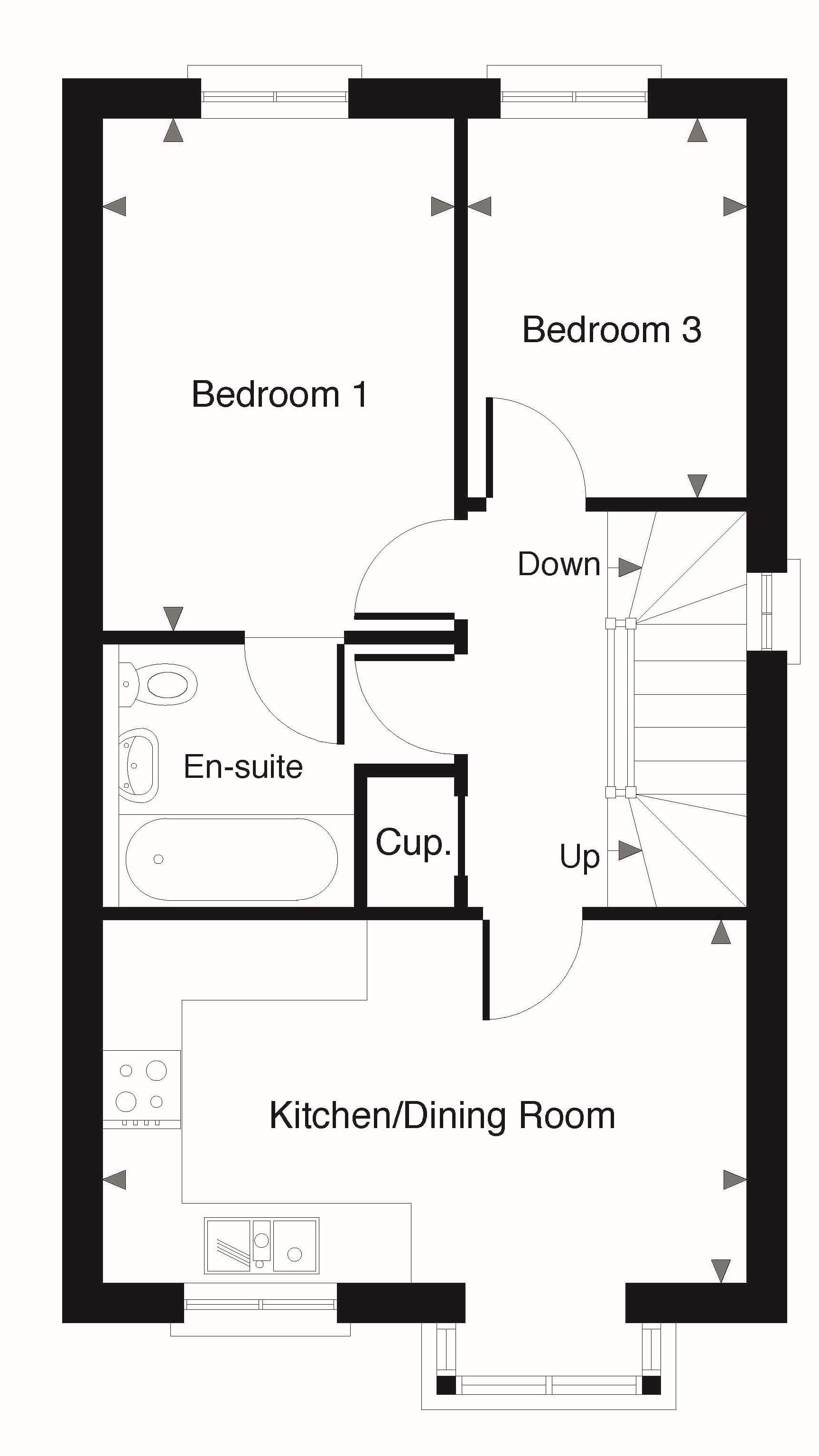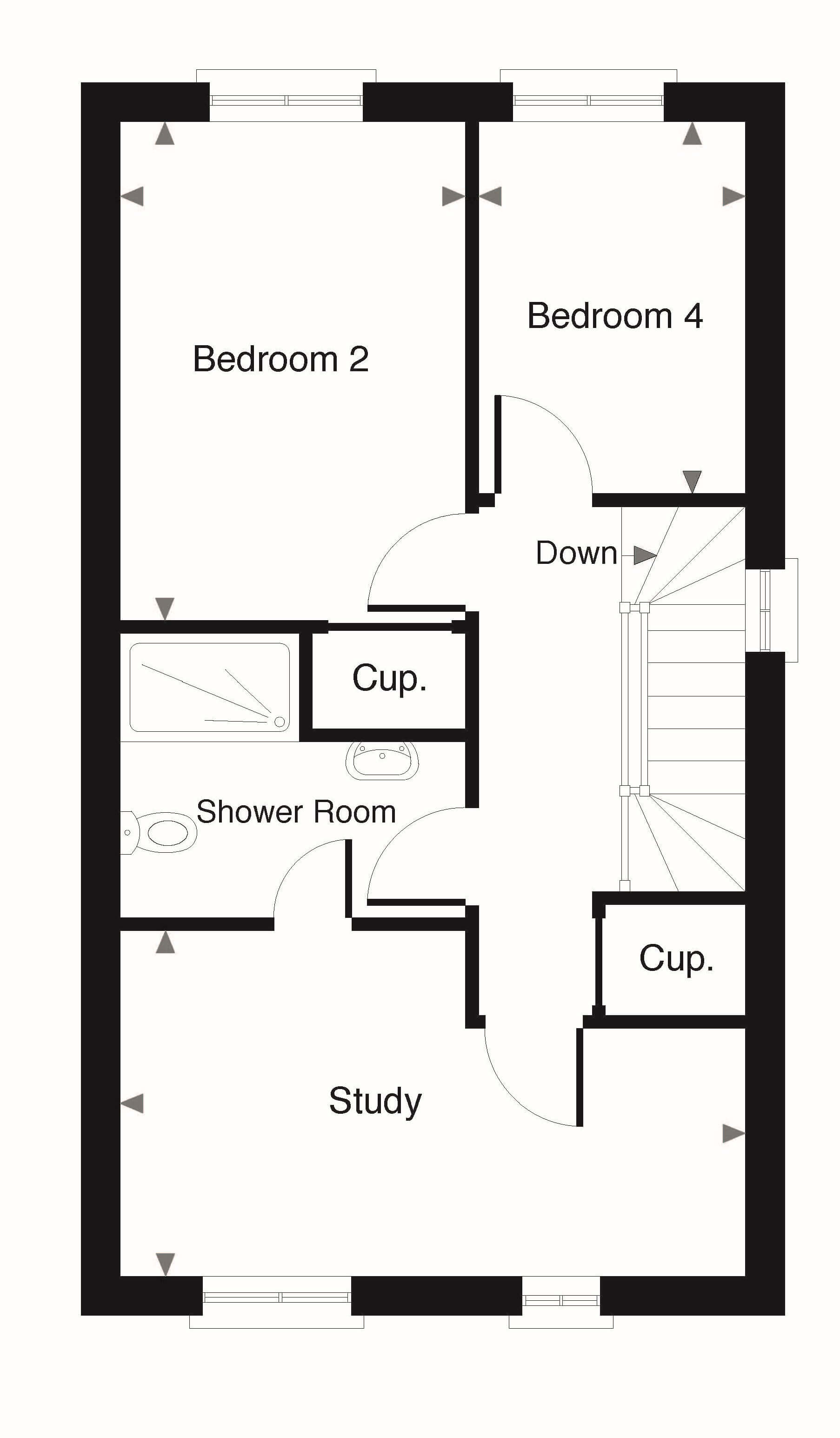 A spacious four bedroom townhouse with an en-suite master bedroom, study, two separate bathrooms, kitchen/dining room, downstairs cloakroom, garage and parking.