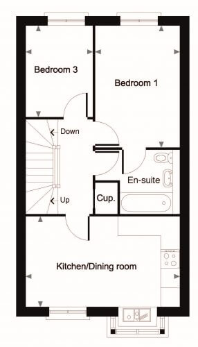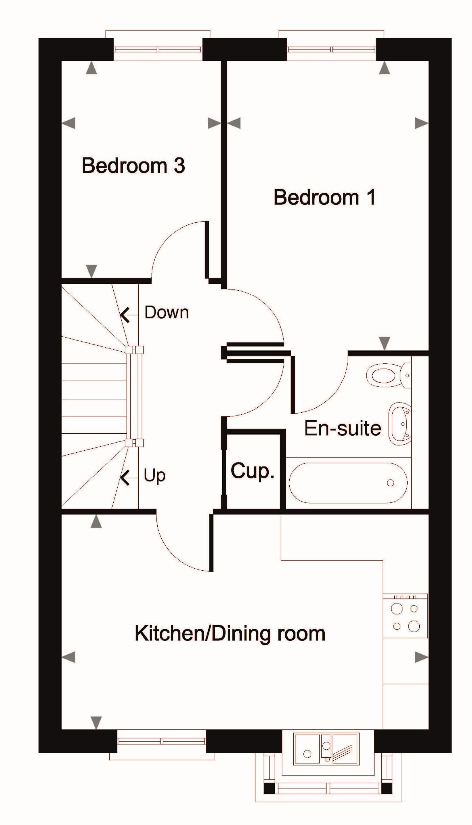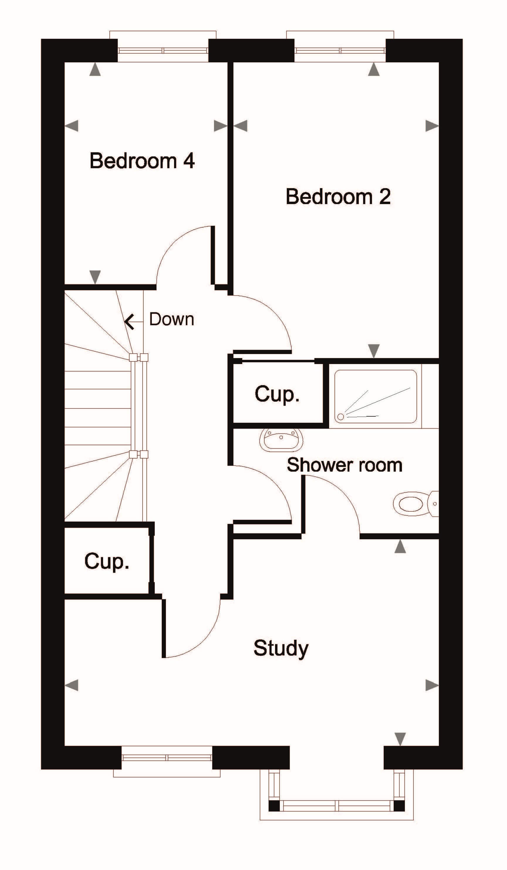 A spacious four bedroom townhouse with an en-suite master bedroom, study, two separate bathrooms, kitchen/dining room, downstairs cloakroom, garage and parking.>