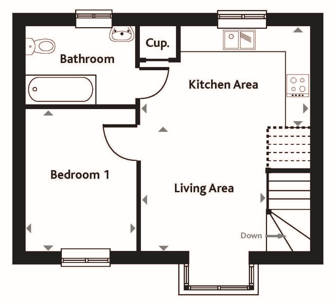 A one bedroom coach house with spacious open plan kitchen/living area and car parking space.