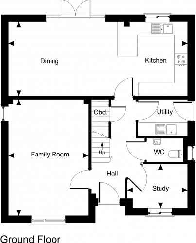 A four bedroom detached house with entrance hall leading to the downstairs cloakroom, a spacious lounge, a large kitchen/dining room, with the benefit of double doors into the garden, a utility room and a study. Stairs lead up to the first floor with both bedrooms 1 and 2 having en-suite bathrooms, bedrooms 3 and 4 and a separate bathroom.