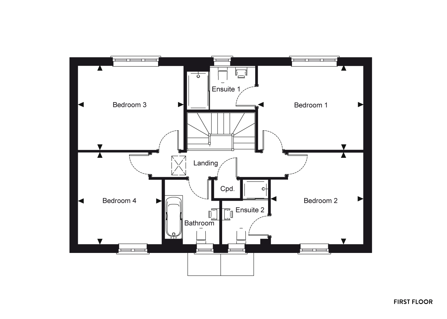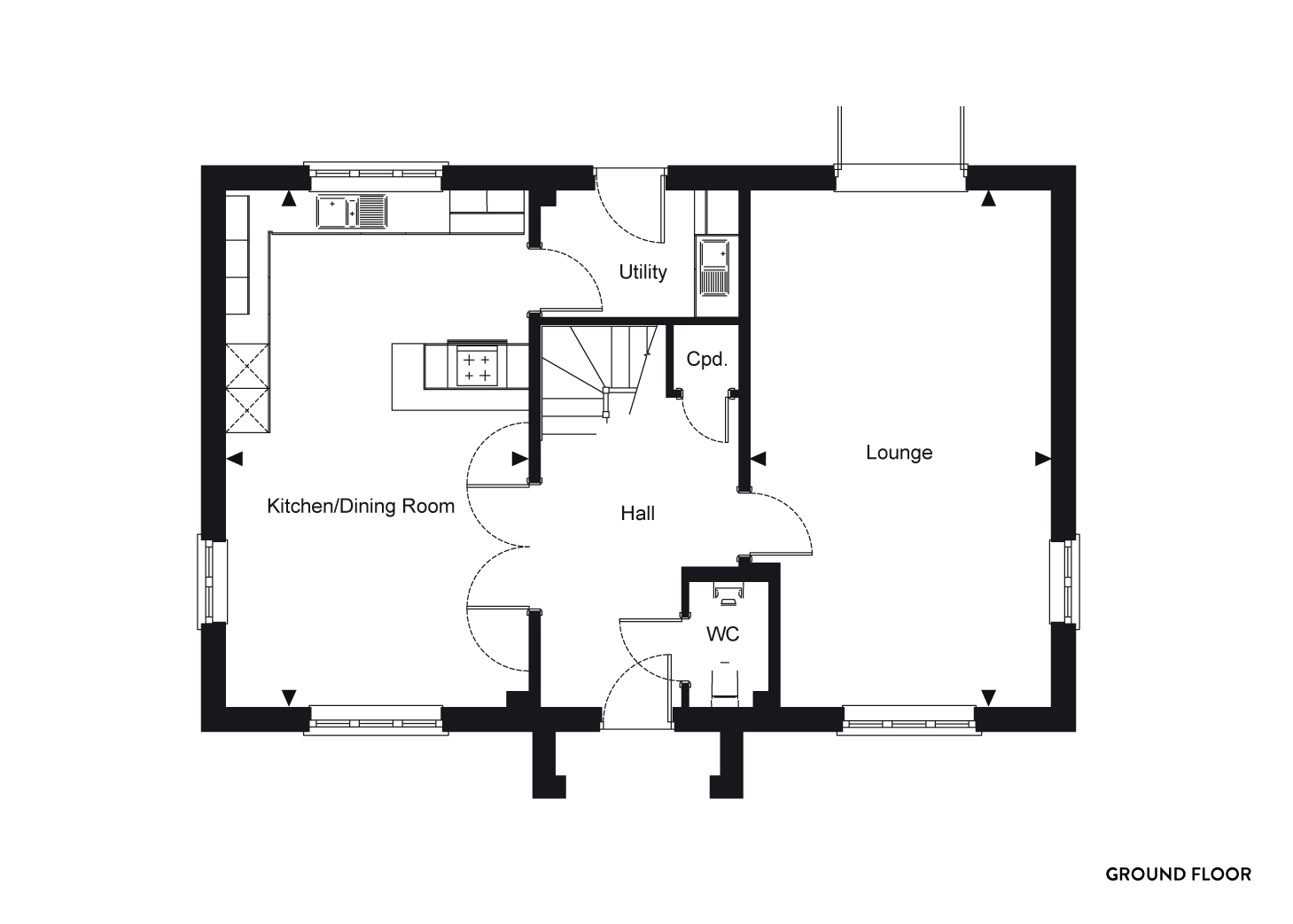 A 4 bedroom detached house. The entrance hall leads to the downstairs cloakroom and spacious lounge with double doors leading out into the garden, a kitchen/dining room and a utility room with direct access to outside. Stairs lead to the first floor to the en-suite master bedroom, bedroom two with an en-suite, bedroom three and four plus a separate family bathroom